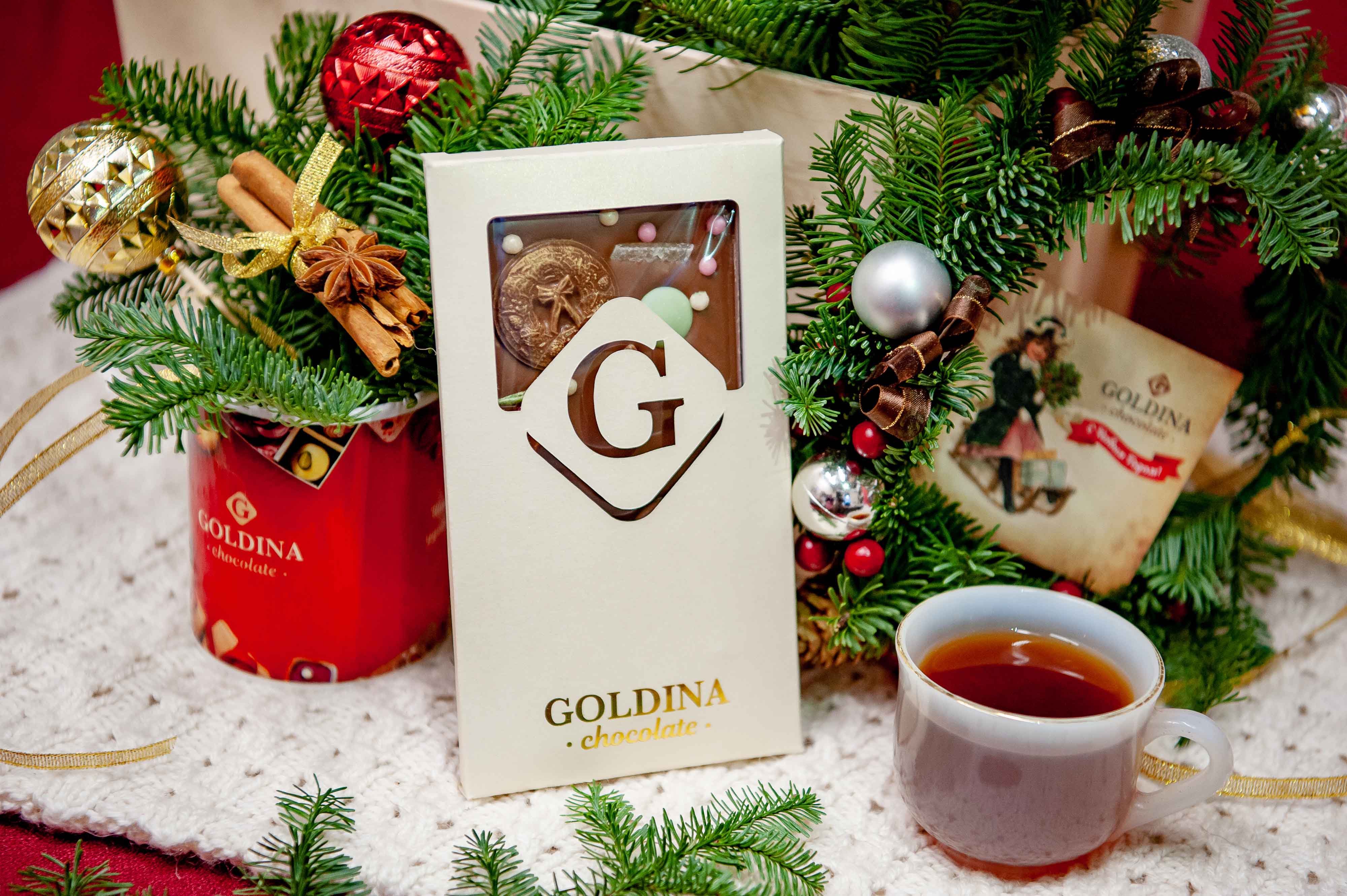 Плитка шоколада весом 120 гр. с новогодним наполнением: надпись С НОВЫМ ГОДОМ или индивидуальная, орешки, цукаты, хрустящие криспы.