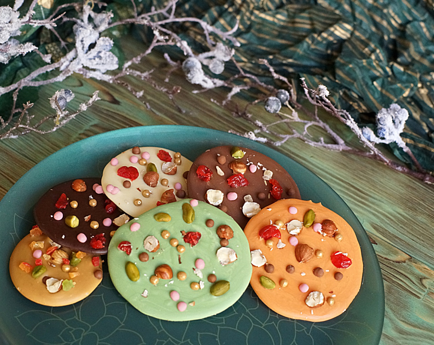 Наши медианты изготовлены из шести!!!видов бельгийского шоколада: темный, молочный,белый,карамелизированный, со вкусом лимона и апельсиновый- эти милые сладкие кружочки порадуют и удивят не только детей, но и взрослых ценителей хорошего шоколада!