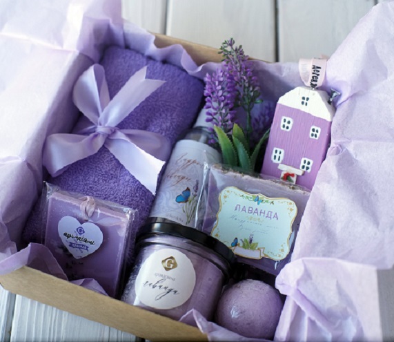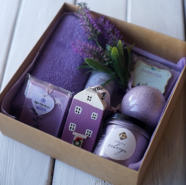 Упаковка- крафтовая коробка и бумага тишью. Букетик лаванды.