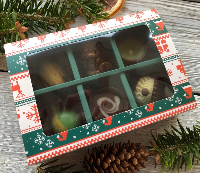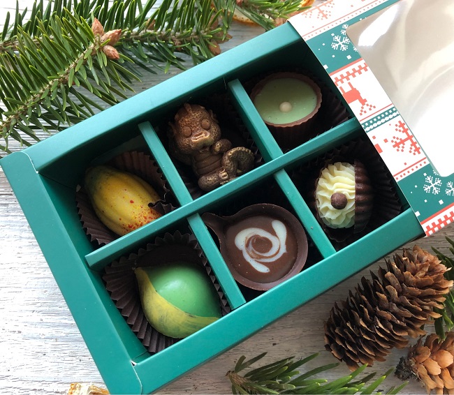 Коробочка с 5 конфетами ручной работы и фигуркой дракончика.