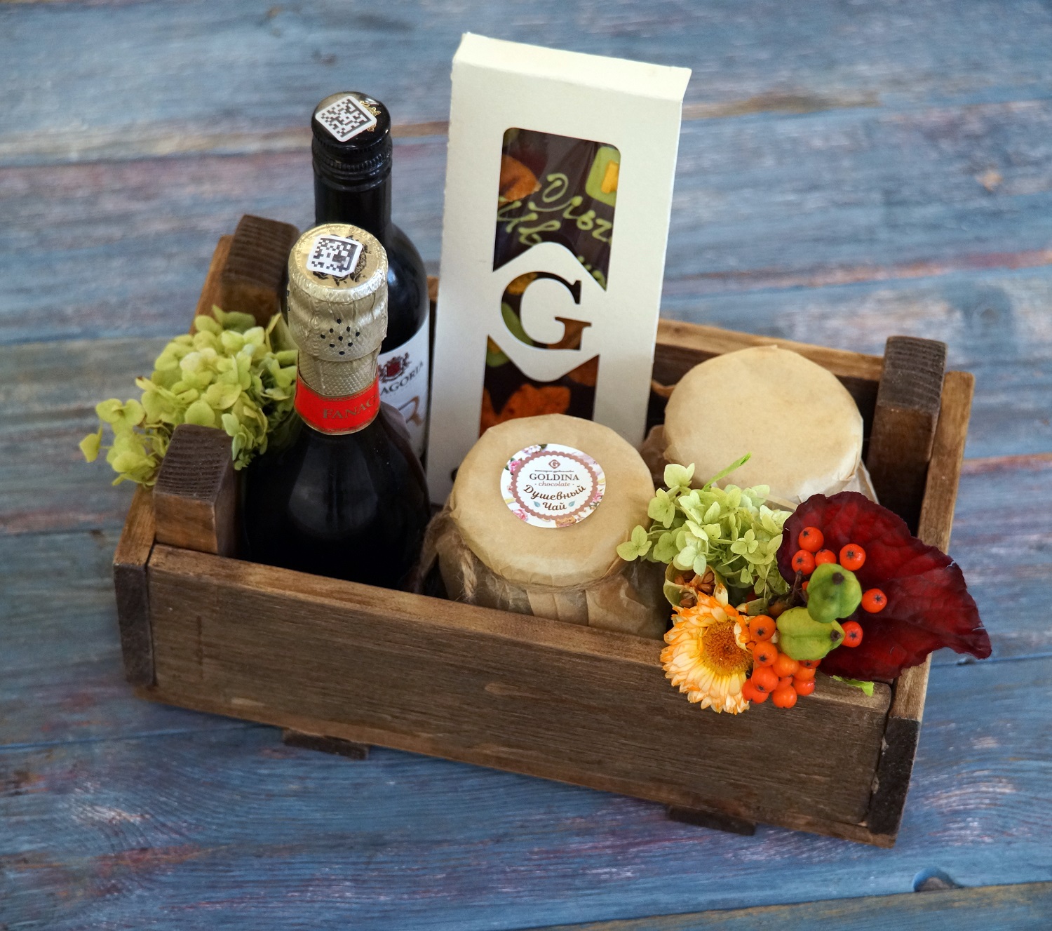 Мы сварили вкуснейшее абрикосово-яблочное конфи, изготовили шоколадные конфеты и плитку, красиво упаковали все в деревянный ящичек из натурального дерева. Пусть ваш подарок поднимет настроение учителю так же, как поднял его нам в момент работы над ним!