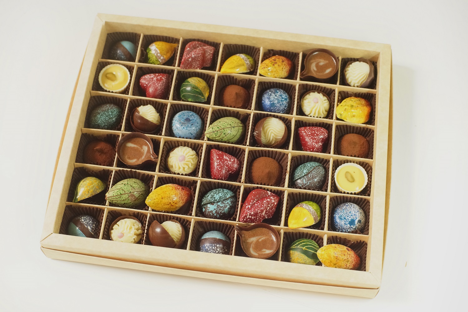 42 удовольствия-42 конфеты ручной работы с невероятно вкусными начинками и удивительными сочетаниями натуральных ингредиентов! Беельгийский шоколад в его классическом звучании и Европейское качество для вас и ваших родных!