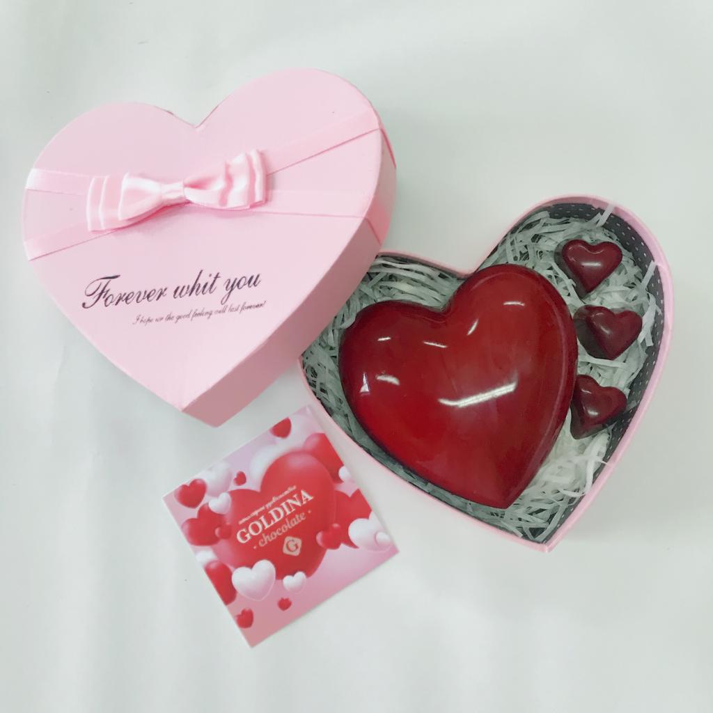 Сердце из молочного шоколада с начинкой, ассорти конфет из романтической коллекции.